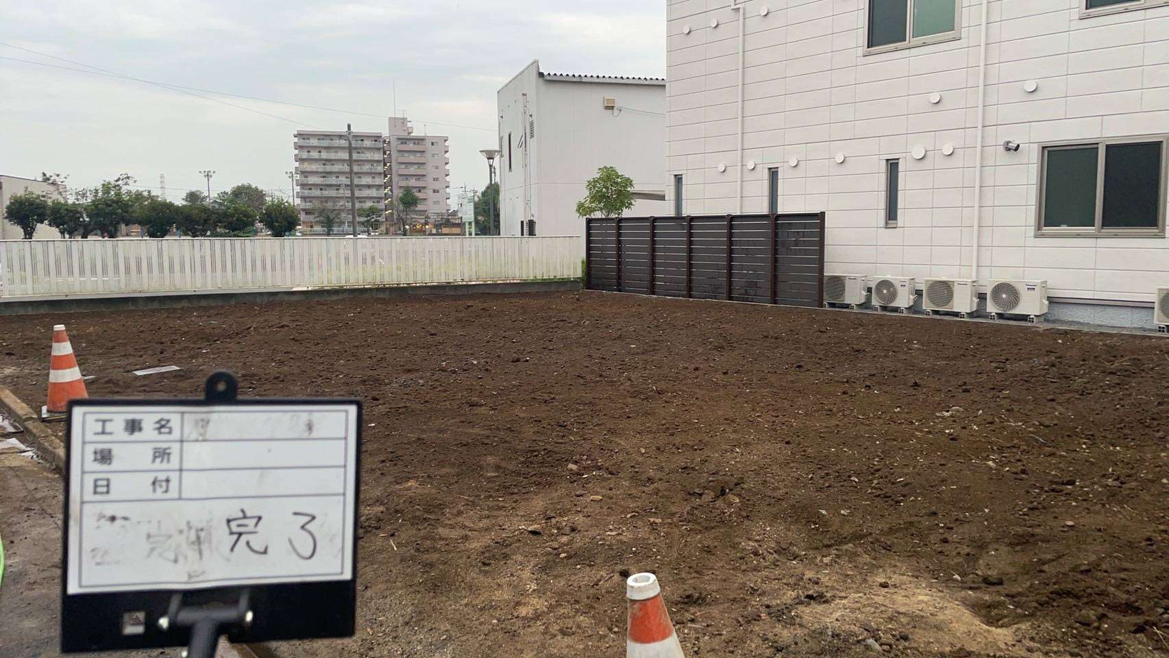 基礎上げが終わり整地へ。土地を平らに均していきます。