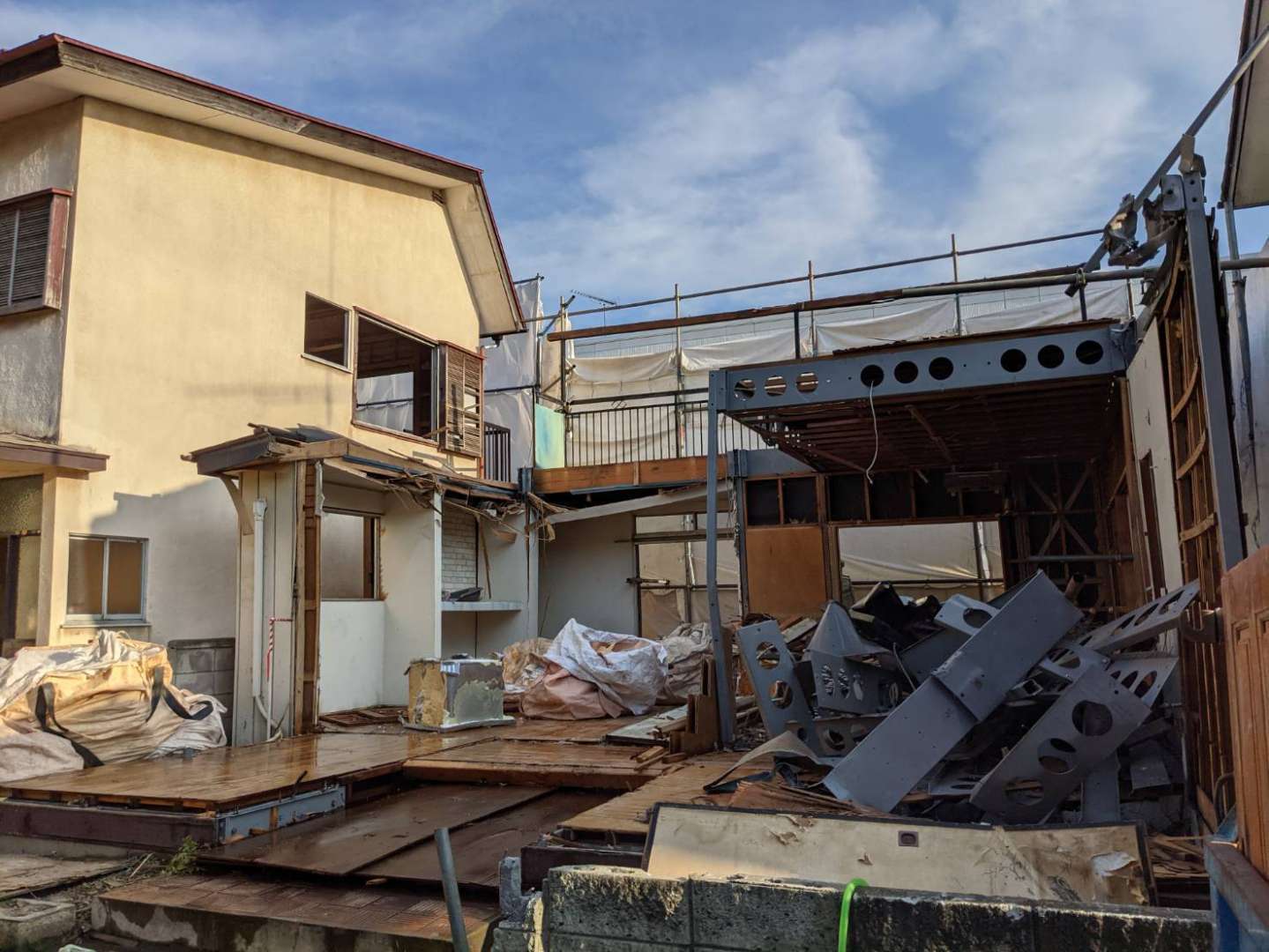 ・初めは鉄骨解体を行う際、道路で壊しました。