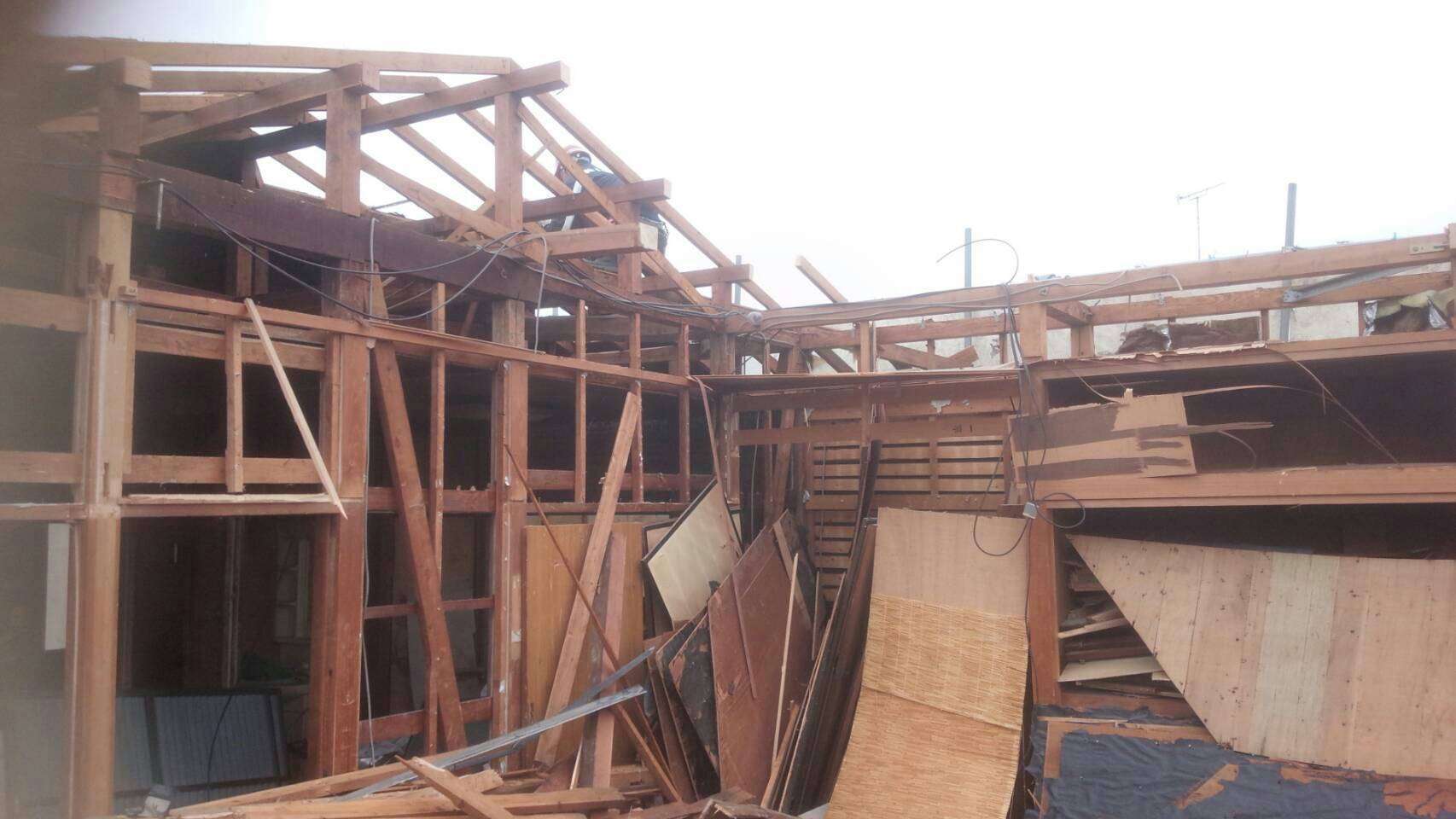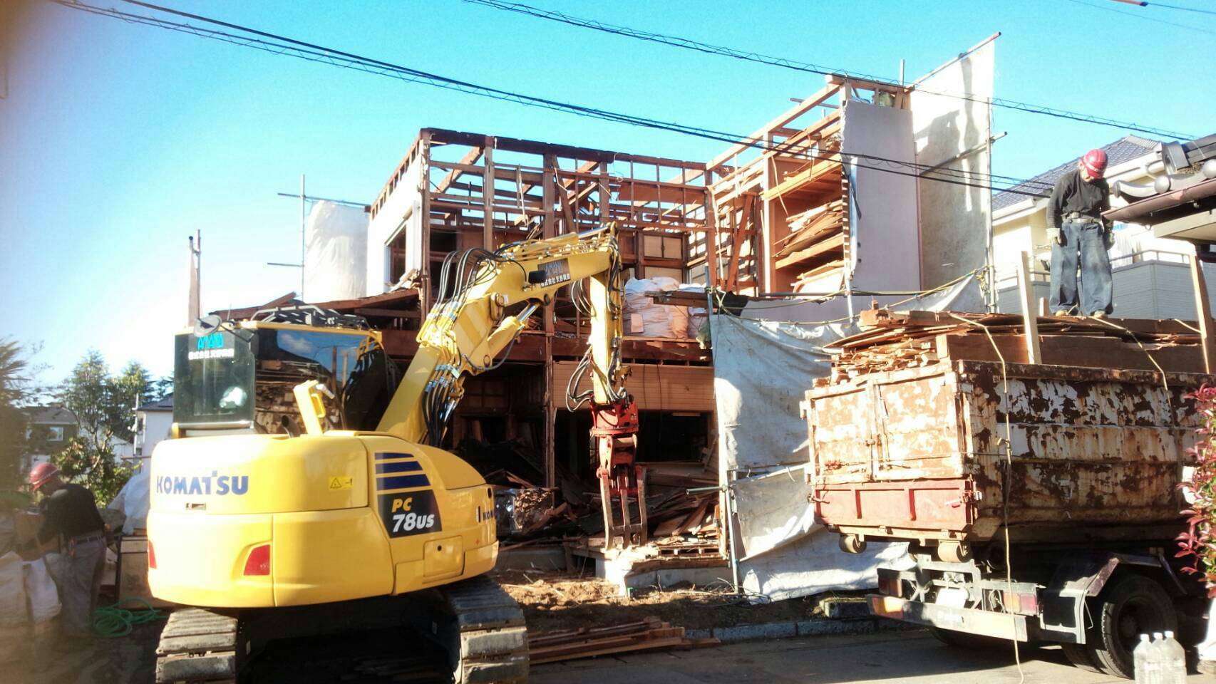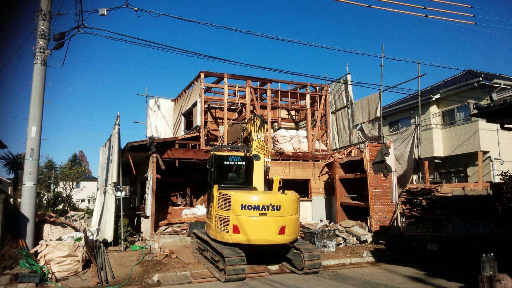 ユンボを通す際は電線に気をつけながら解体していきました