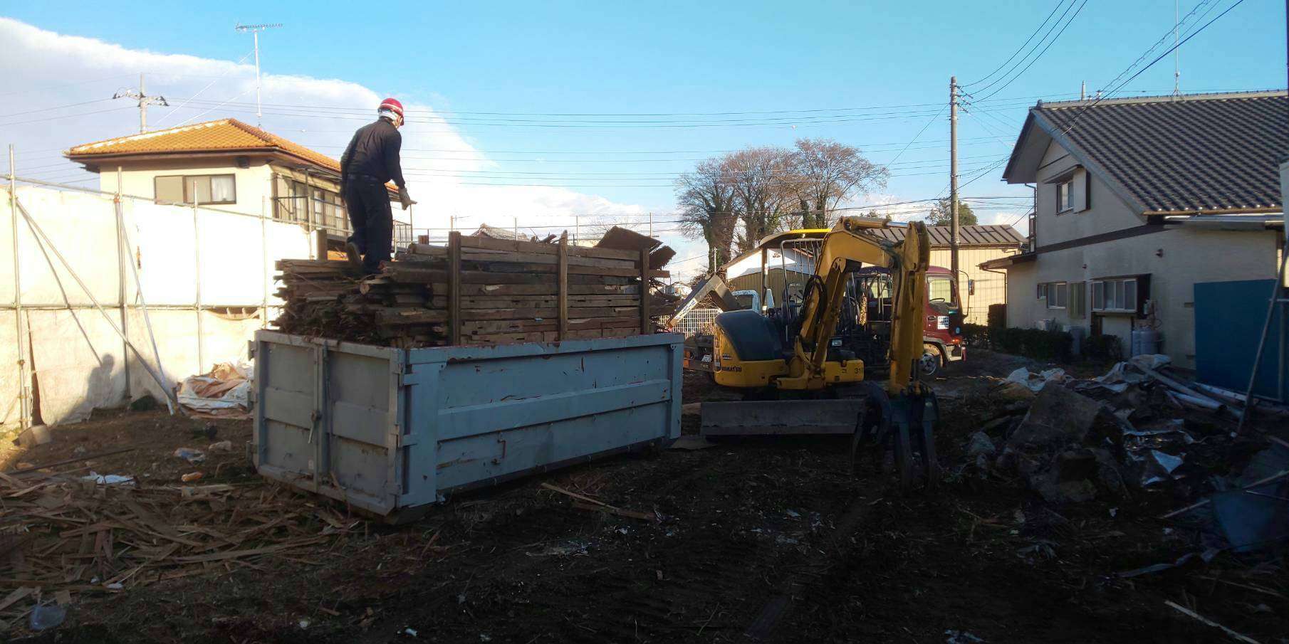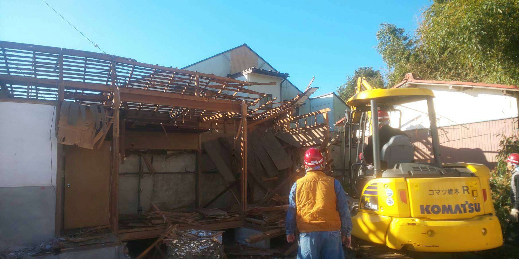 次に瓦おろしをし、ユンボを入れ平屋を壊し始めました。