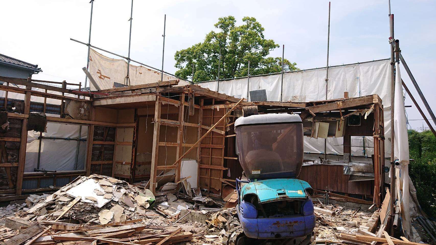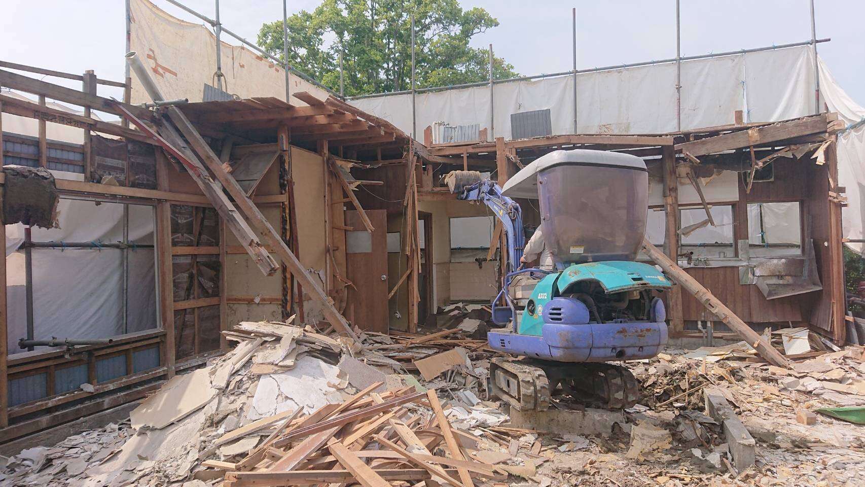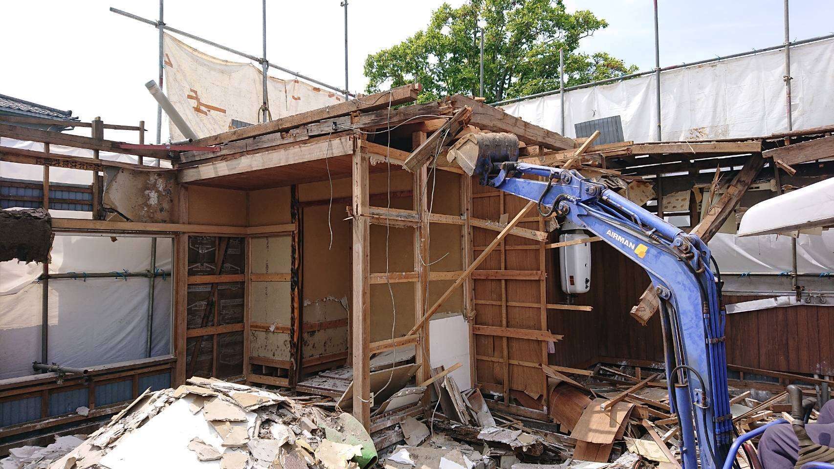 ①入り口は重機が入るには狭かったこともあり、はじめは手壊しでの解体でした。