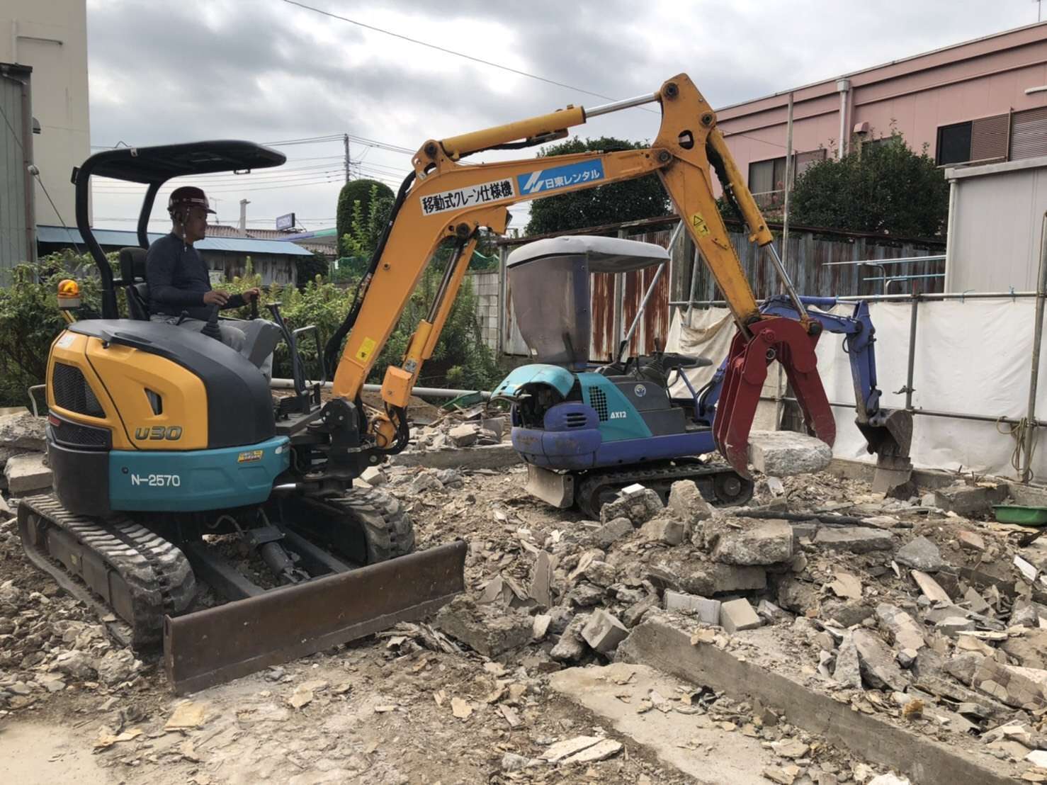 ⑥2Fが終わり1Fになったら、ミニユンボで解体して行きます。
